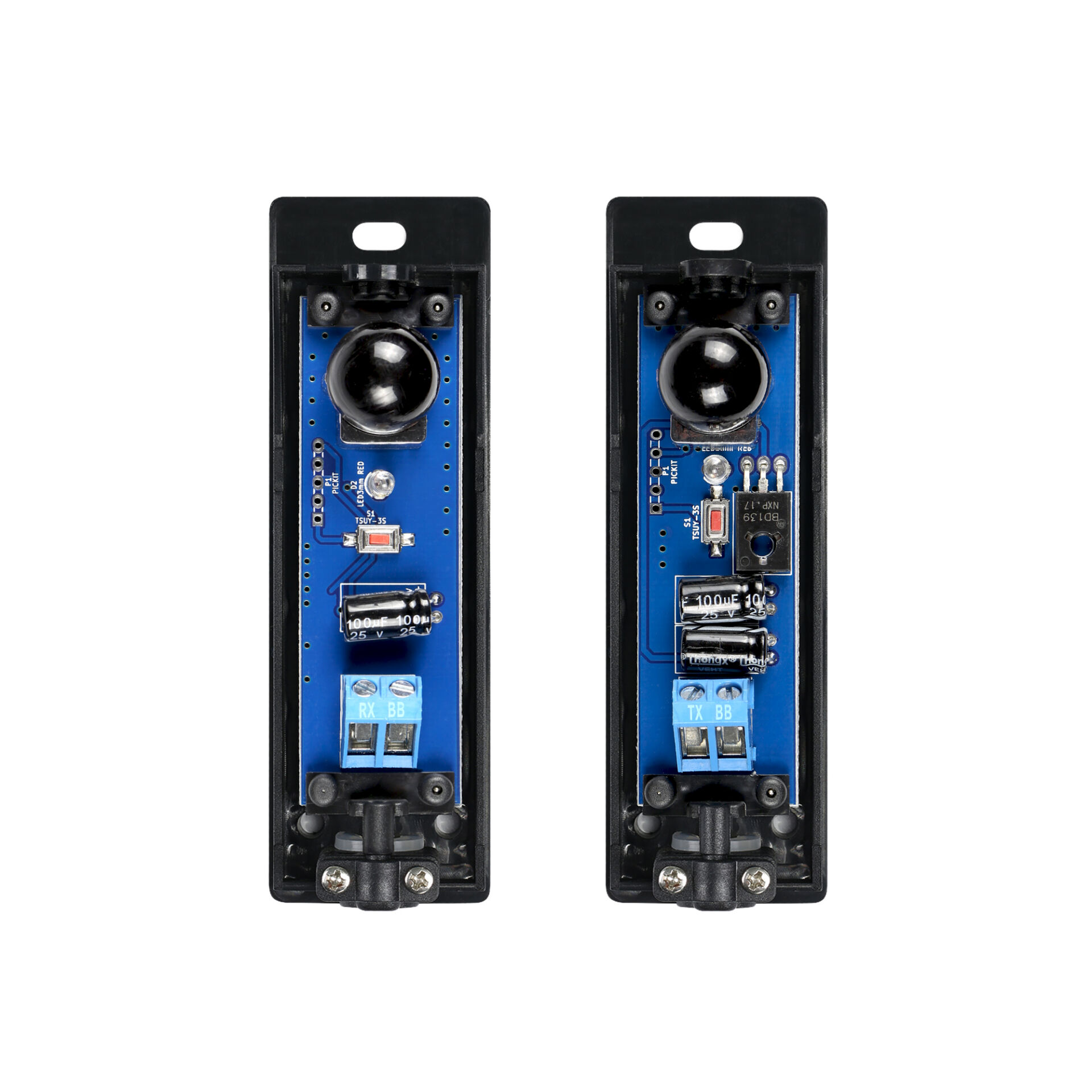 PMBH This digital photocell is designed for use in gate systems as a safety device. Compatible with the Hörmann system, it features a safety feature that resets the receiver's output to a faulty state following a failure of the receiver's microprocessor. It features a slim housing.