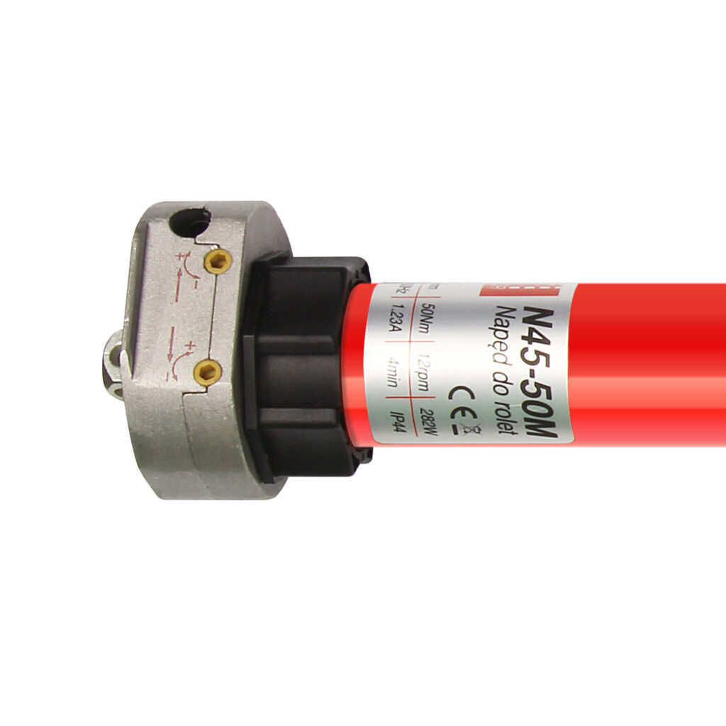 ATELOR N45-50M to silnik rurowy, szybkoobrotowy do rury oktagonalnej lub okrągłej o średnicy 60 mm. Moment obrotowy silnika wynosi 50 Nm przy 12 obrotach na minutę. Napęd posiada dodatkowo awaryjny system ręcznego otwierania NHK. Umożliwia sterowanie roletą za pomocą przycisków ściennych. W skład kompletu wchodzą niezbędne akcesoria umożliwiające montaż napędu w puszce roletowej. Opcjonalnie, możliwe jest podłączenie odbiornika zewnętrznego do sterowania radiowego.
