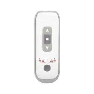 Pilot posiada silikonowe przyciski GÓRA/STOP/DÓŁ, jeden przycisk umożliwiający zmianę kanału rolety oraz bumper chroniący pilota przed uszkodzeniami. W zestawie z pilotem dołączony jest uchwyt ścienny.